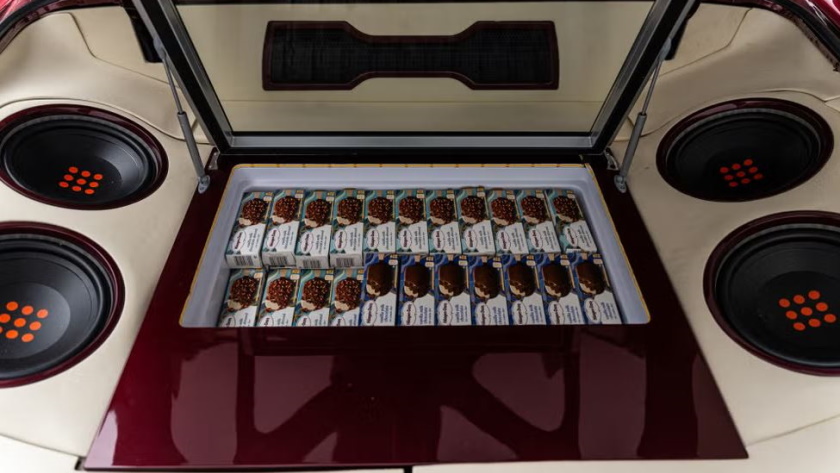 O compartimento de carga foi transformado com um amplificador e refrigerador. A tampa interna do porta-malas é espelhada, refletindo tudo o que está dentro, com o habitáculo a ser equipado com sistema de som, luzes de LED e um refrigerador para manter os sorvetes Häagen-Dazs perfeitamente gelados.