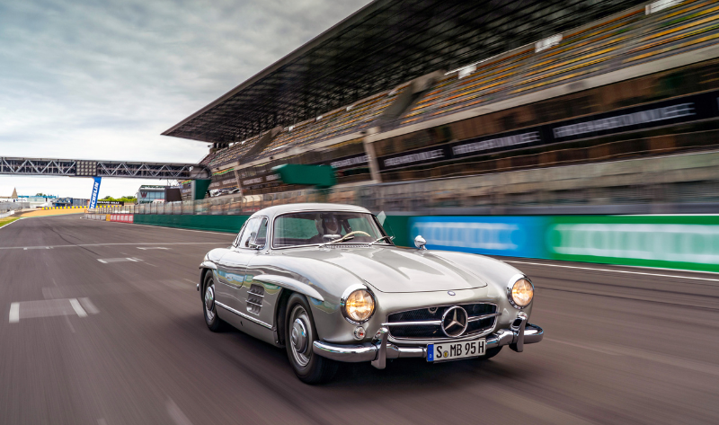 Entre eles encontra-se um raríssimo Mercedes-Benz 300 SL Gullwing de 1954 (estimativa: 1.250.000 € – 1.750.000 €), um dos apenas 167 exemplares produzidos no primeiro ano. Originalmente destinado a Nova Iorque, foi entregue na cor White Grey com interior em tecido axadrezado verde-bege. Regressou mais tarde à Alemanha, onde foi alvo de um restauro completo em 2016, passando a ostentar a clássica combinação prateada com interior vermelho, acompanhada por duas malas de viagem em couro a condizer.