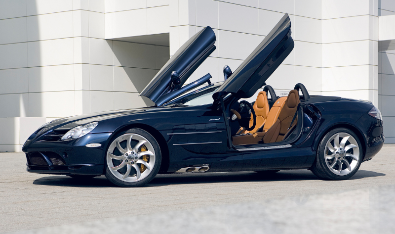 A coleção fica completa com um exclusivo Mercedes-Benz SLR McLaren Roadster de 2010 (estimativa: 375.000 € – 475.000 €), um dos apenas 520 produzidos. Apresenta-se em Crystal Laurit Silver Metallic com interior preto e antracite, jantes turbina de 19 polegadas e apenas dois proprietários desde novo.