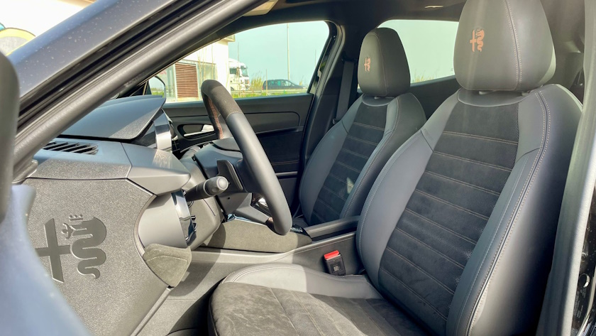 Apesar do recurso a plásticos mais duros em algumas zonas do interior, o amplo recurso a Alcantara (seja no volante seja na secção intermédia do tabliê) eleva a agradabilidade a bordo, a sensação de qualidade e traz à memória propostas de outros tempos da indústria automóvel italiana.