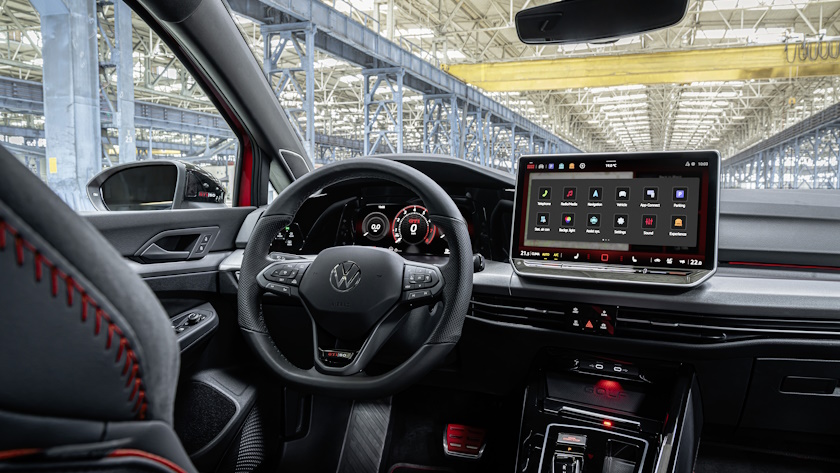 O novo GTI destaca-se por uma dinâmica mais apurada, potenciada pela suspensão adaptativa DCC, jantes de liga leve Queenstown de 19’’ e um chassis 15 mm mais baixo do que o de um Golf convencional.